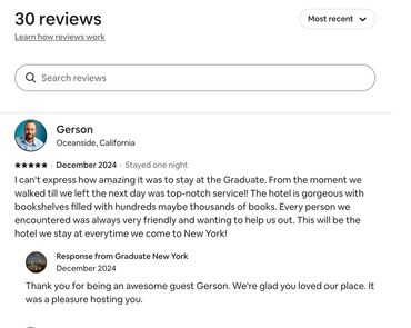 When searching booking.com for the Graduate New York hotel for two guests staying March 24th - 26th in a Graduate King Room we found it to be a full $156.54 MORE than Airbnb's price of $605.52.